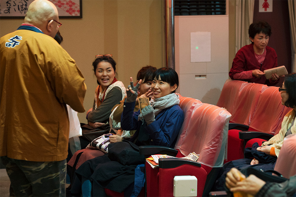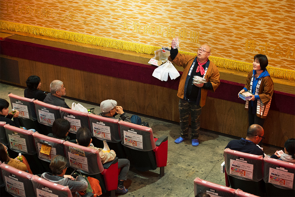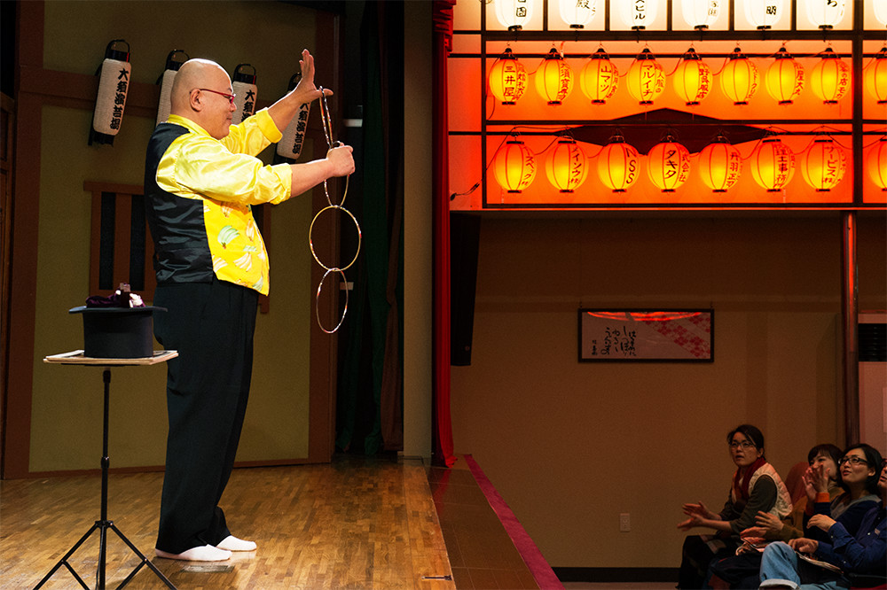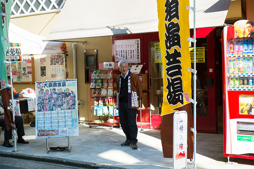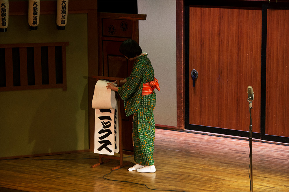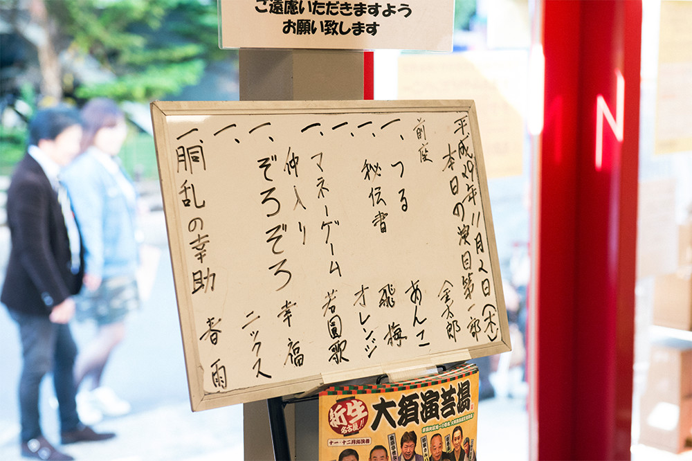 大須演芸場にはじめて行ったのは、1990年の古今亭志ん朝の高座だ。当時「日本一客が入らない」と云われていた大須を連日満員札止めにした伝説の高座「大須演芸場独演会」。ぼくの落語デビューでもある。かなり笑撃だった。志ん朝の“笑い”ももちろんだが、落語がもっている独特の様式が新鮮だった。出囃子にあわせて登場したり、全体が「まくら」「さわり」「おち」という三段で構成されていることなどに魅かれた。とくに「さわり」という用語にシビれた。「さわり」とは、最初の部分のことではない。全体が凝縮された部分のことを云う。しかもその部分が、異世界に触っているという意味で「さわり」なのだ。うーむ、粋だ。一番のコアな部分が、外部に触れている境目だなんてまるでヴィトゲンシュタインだ。いまの遊びは、コンテンツとかソフトとか云って中身だけが取り沙汰されすぎてないか。もっと「さわり」などの境界で遊んだほうがいい気がする。そうだ、大須演芸場のある大須という場所がそもそも異界に触っている。